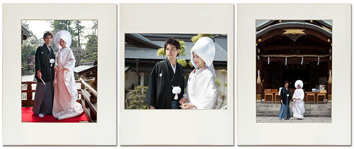写真データ200~300カットと、お気に入りの写真を高級台紙入り六切り3面写真にお作りします。